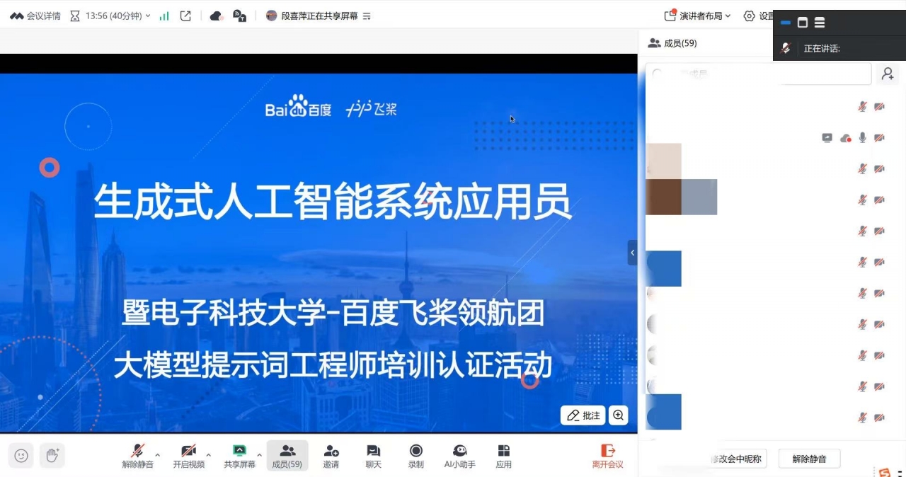 5月26日、28日,学院联合电子科技大学飞桨领航团、百度与深度学习技术及应用国家工程研究中心线上开展生成式人工智能系统应用员暨电子科技大学-百度飞桨领航团大模型提示词工程师培训认证活动。百度飞桨技术专家围绕大模型提示词工程展开分享,并组织线下考核测试,进一步检验和巩固同学们的学习成果。